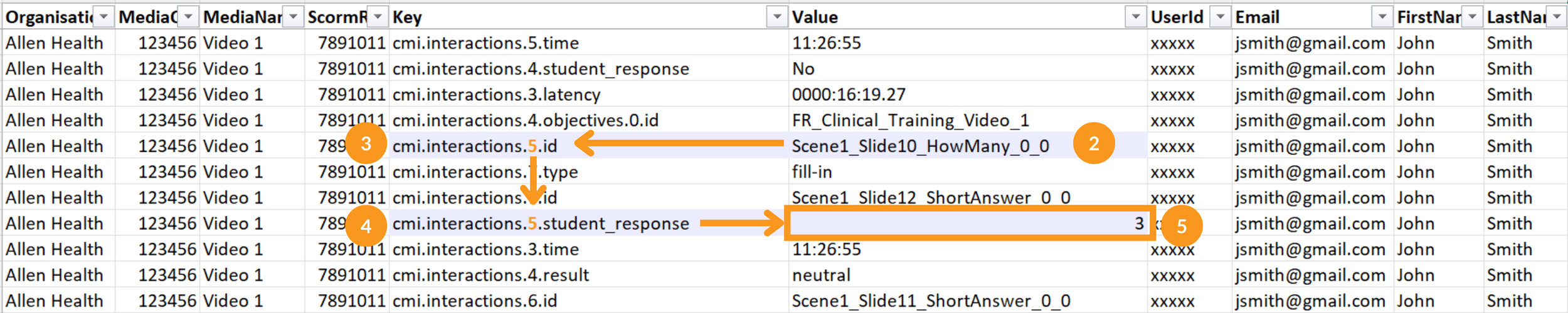 4. Look for the corresponding “cmi.interactions.#.student_response” in the Key column
