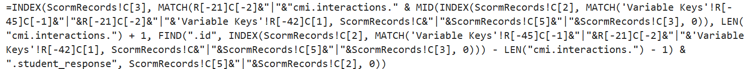 First, I coded a report in Excel that interpreted the raw SCORM data. The code was designed to do the following: