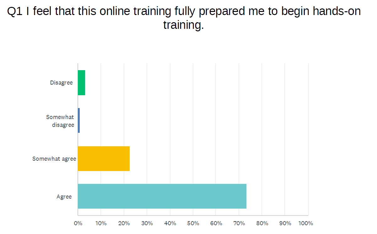 The survey was strategically positioned to look required, although in reality it did not count towards course completion. In this way, we achieved a response rate of 97%.