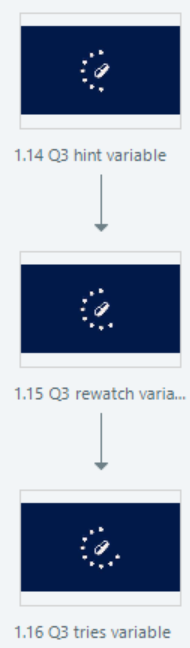 Thus, I extracted variable data using the Short Answer/How Many slide technique. I placed these variable slides at the end of each video and set the timeline to the minimum length, so that they would flip by. I then disguised them by overlaying custom “loading” graphics: