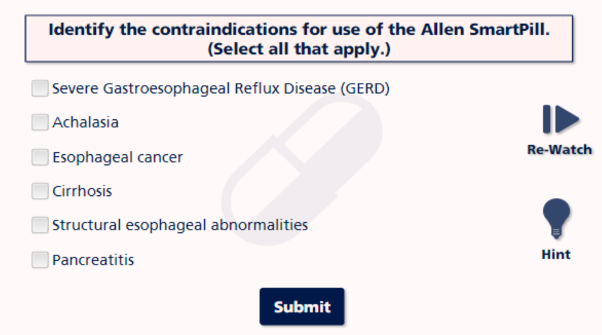 My brief from the Medical Team was: I could add things to the videos to make them more engaging, but I could not modify the content itself. I decided to punctuate each video with rigorous questions that would keep the learner engaged: approximately one question per 2 minutes of video content.